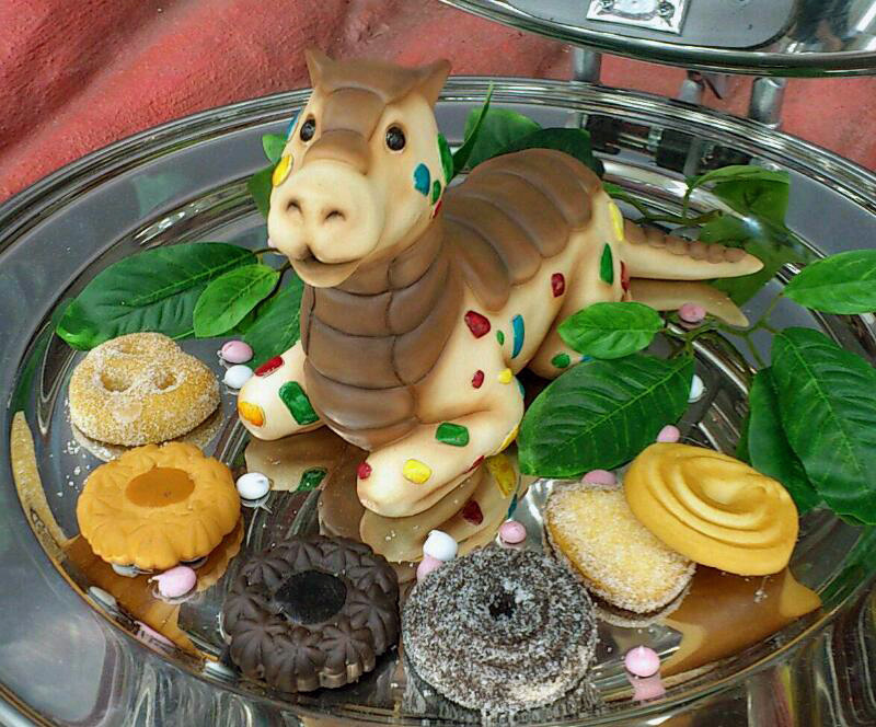 ガララワニの上に精巧なつくりの食材が。