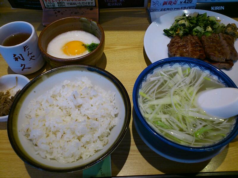 1日の夜ご飯は牛タン定食にとろろをつけた☆