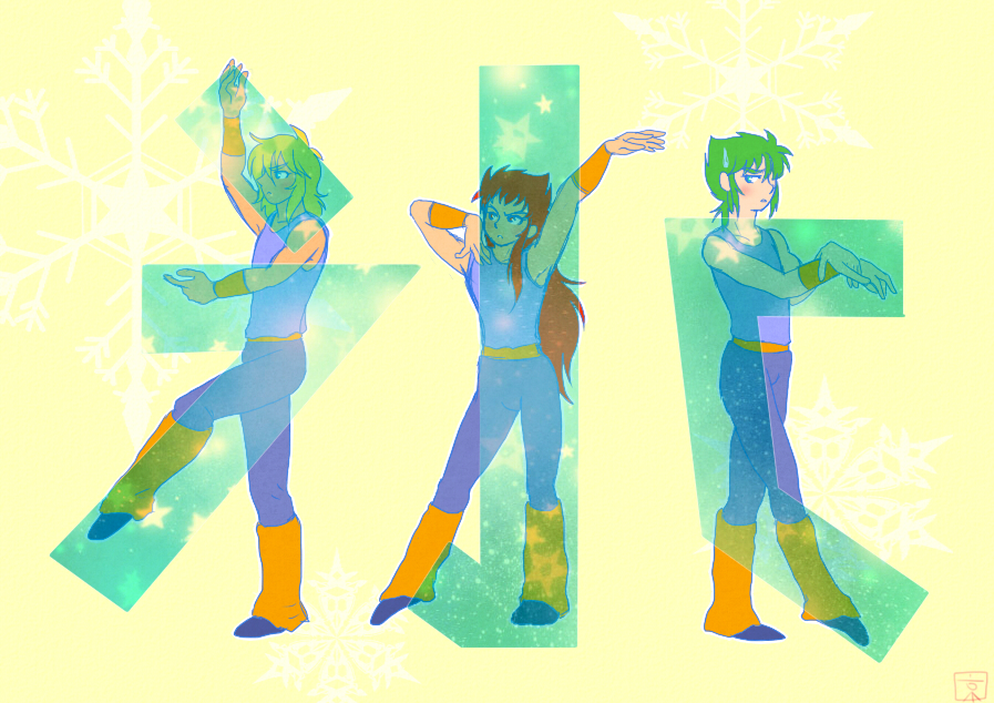 きっとね、言いだしっぺのカミュは細かく弟子2人にこうしろああしろこうじゃあないってポーズに関してものすっごいうるさいと思うんだ。