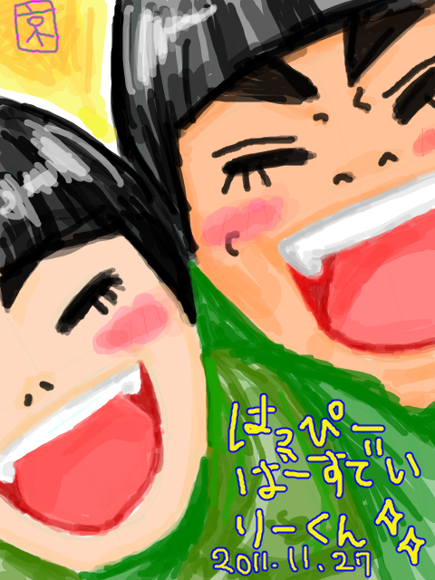 昨日手ブロで描いたおめでとう絵なんだけど、リー君っていうかガイ先生の方がメインぽいw