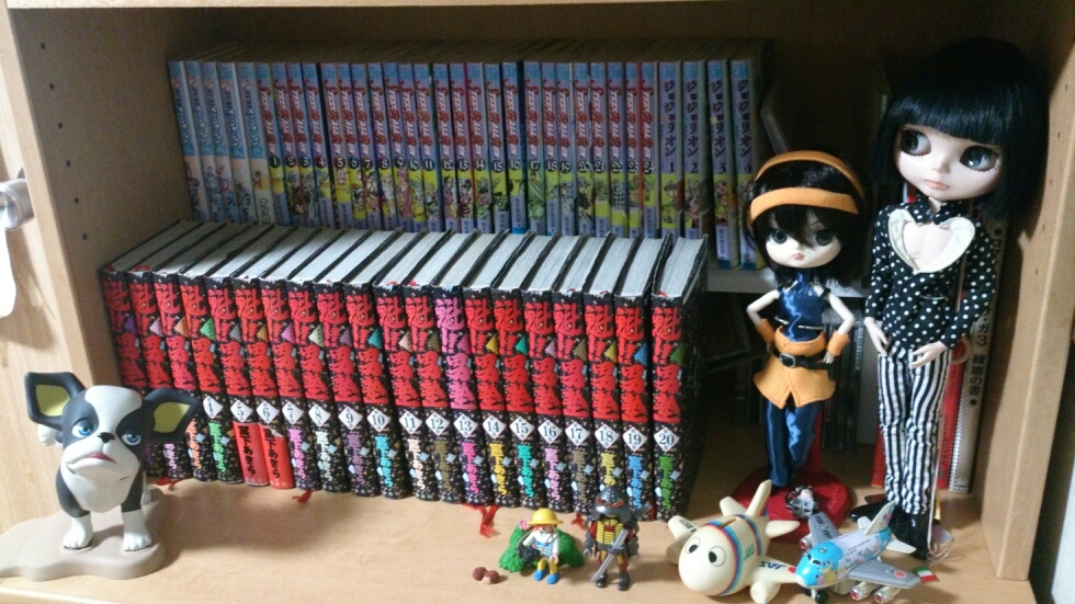 我が本棚はジョジョばっかり入ってるんだけど、そこに無理やりねじ込んでみた。